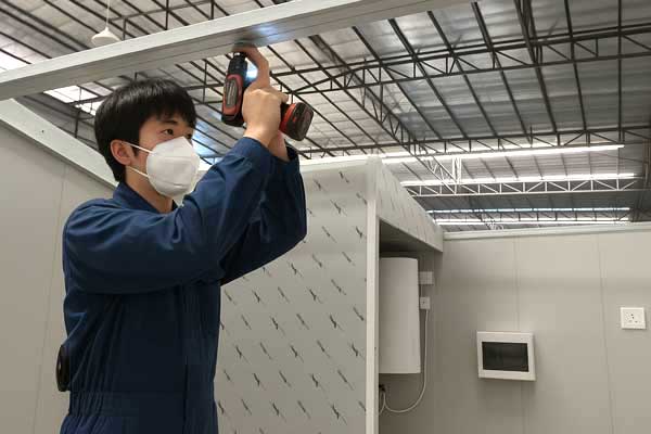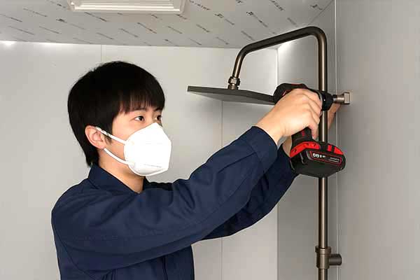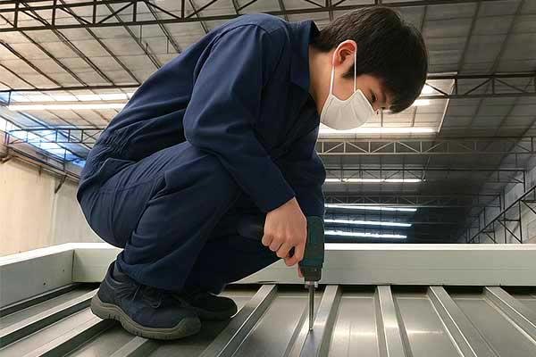 少人数チームで効率的に組み立て。電動工具中心の安全作業