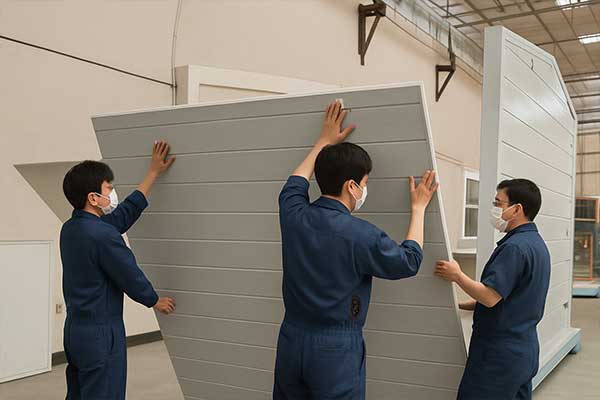 パネル同士を組み合わせるモジュール構造で、現場組立はブロック遊びのようにスピーディ。搬入から設置までのタイムロスを最小化します。